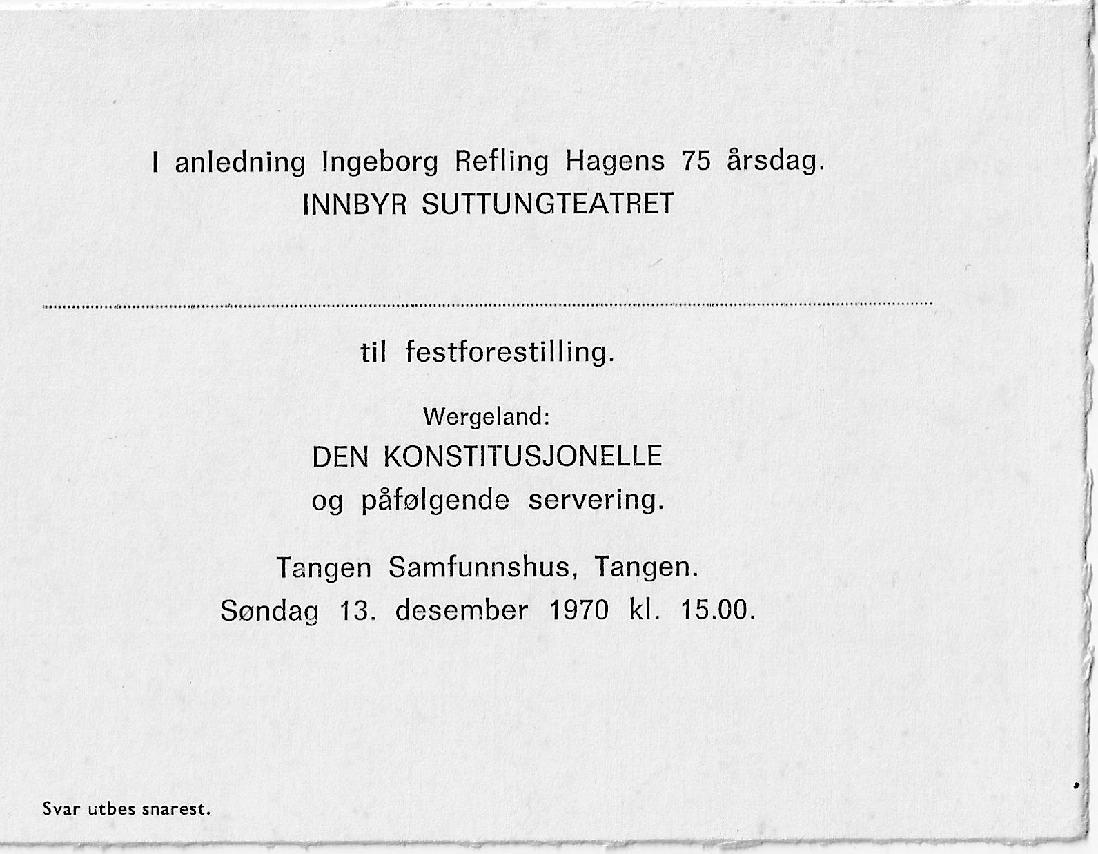 | Emneord | Invitasjon, Teater, Tekst, Festforestilling |