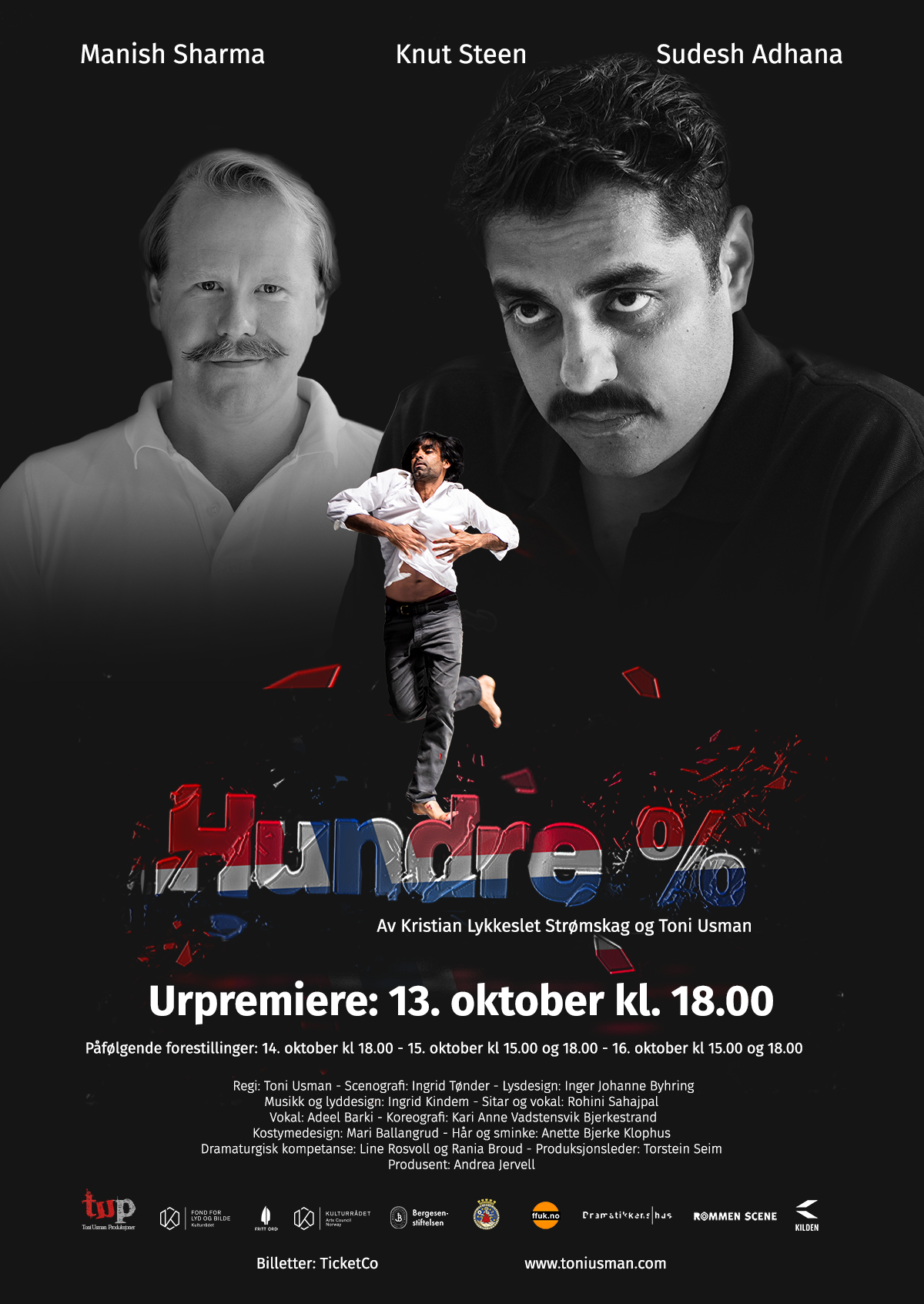 Plakat fra Toni Usman Produksjoners teaterproduksjon Hundre% (2022).
