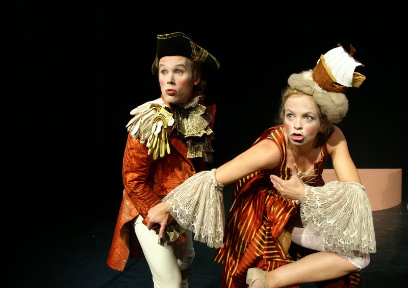 Fotografi fra Teater Jokers produksjon BARON VON MUNCHHAUSENS elleville kanonkuleferd, sanseløse bønnestengelmåneklatring og andre halsbrekkende SANNHETER! (2009)