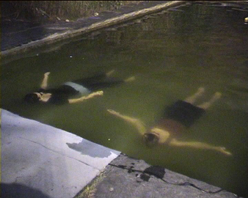 Videostill fra produksjonen Synkronsvømming - han synger når han flyr (2000).