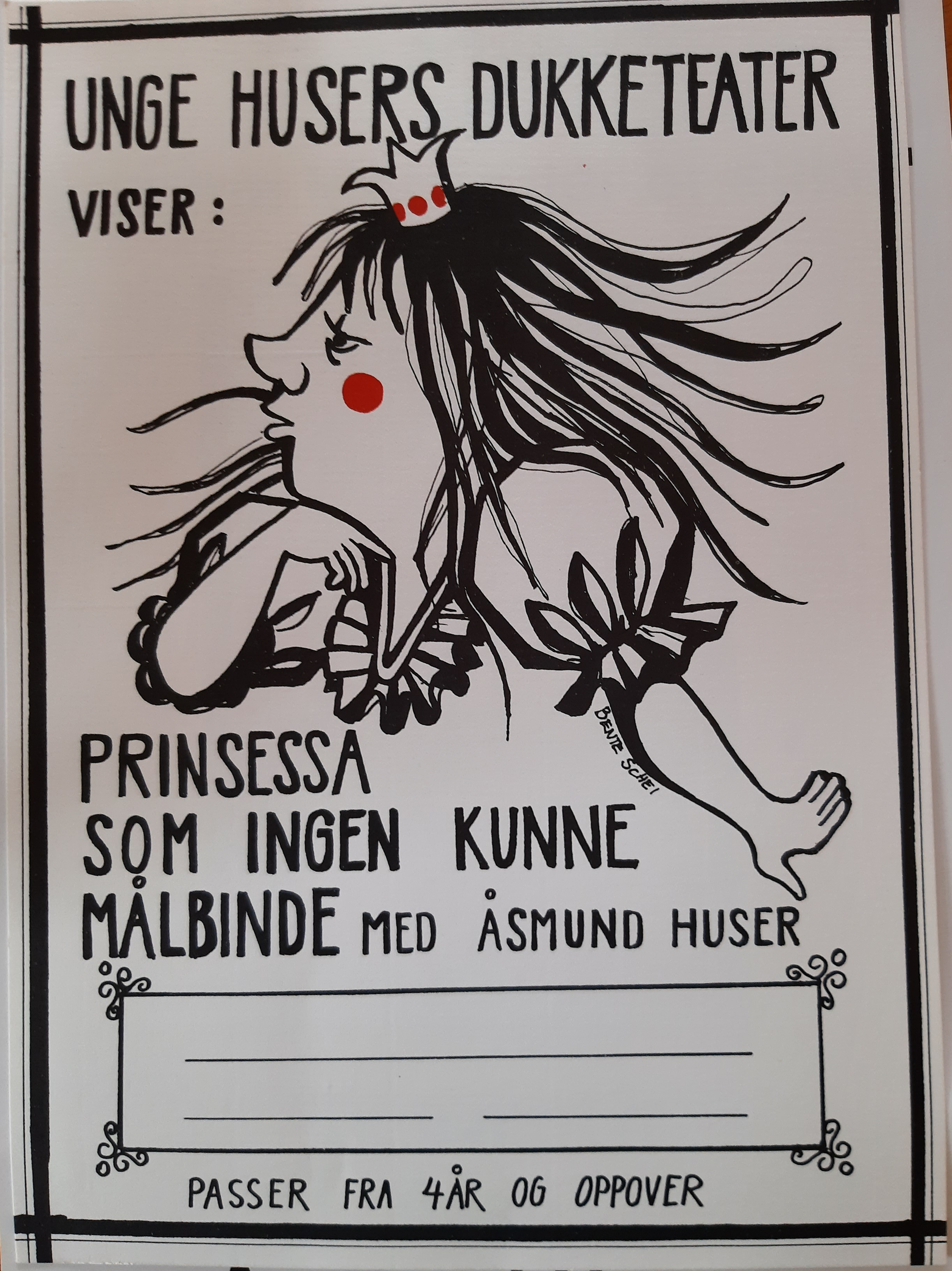 Plakat fra Prinsessa som ingen kunne målbinde (premiereår ukjent) av Unge Husers Dukketeater.