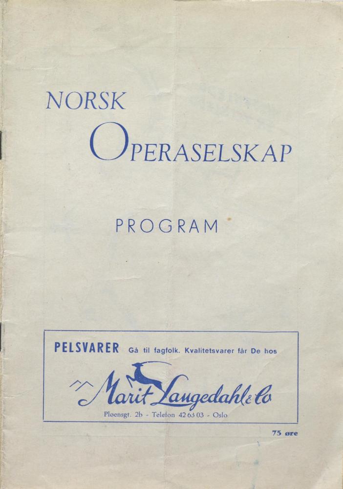 Forestillingsprogram for Madame Butterfly (1951) av Norsk Operaselskap.