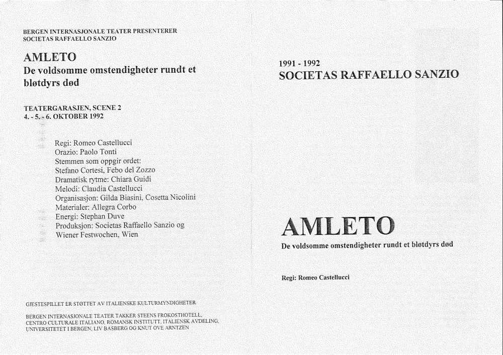 Program fra Societas Rafaello Sanzios produksjon "Amleto" (1991)