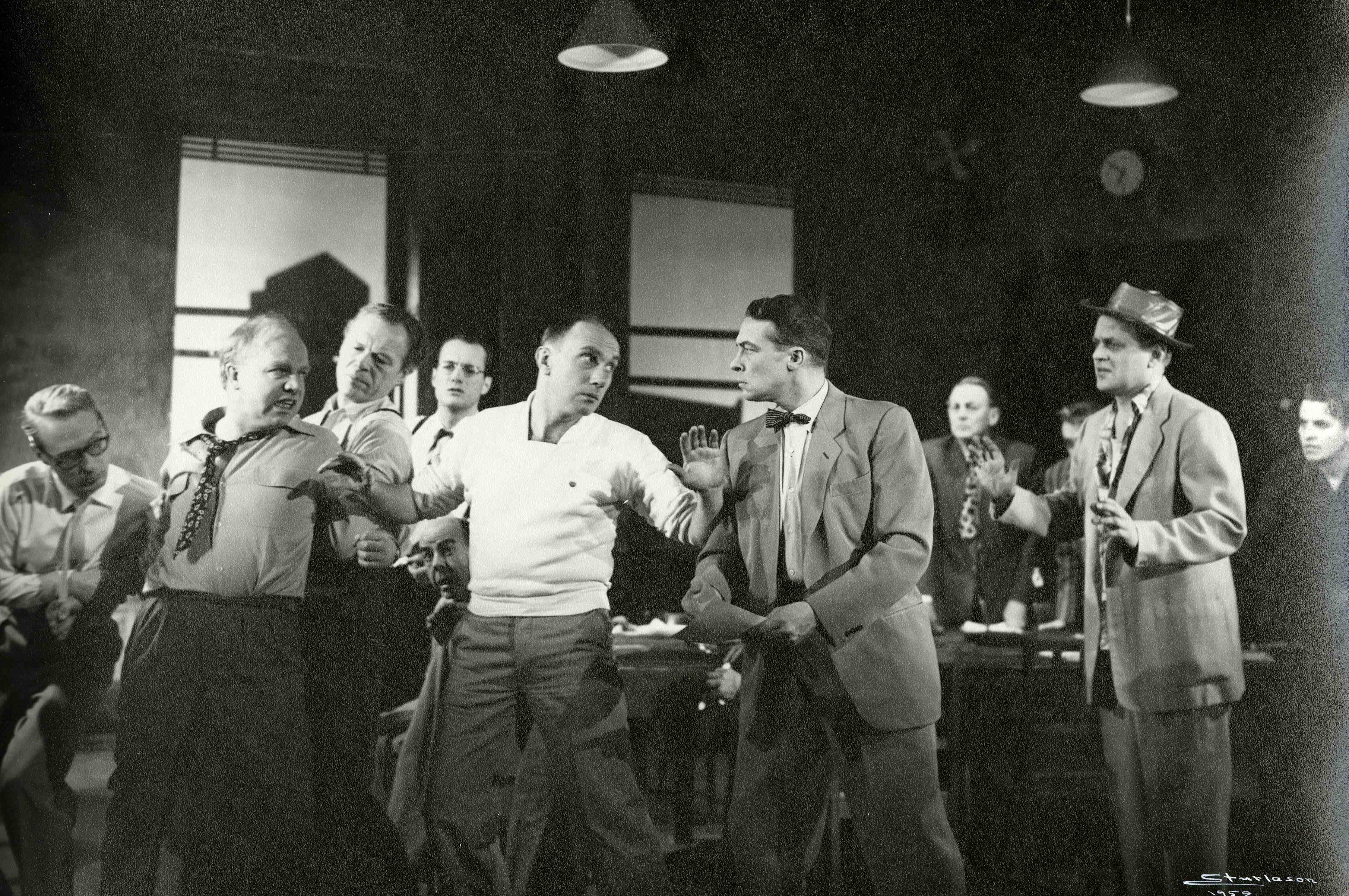 Fotografi fra Det Nye Teaters produksjon 12 Edsvorne menn (1959)