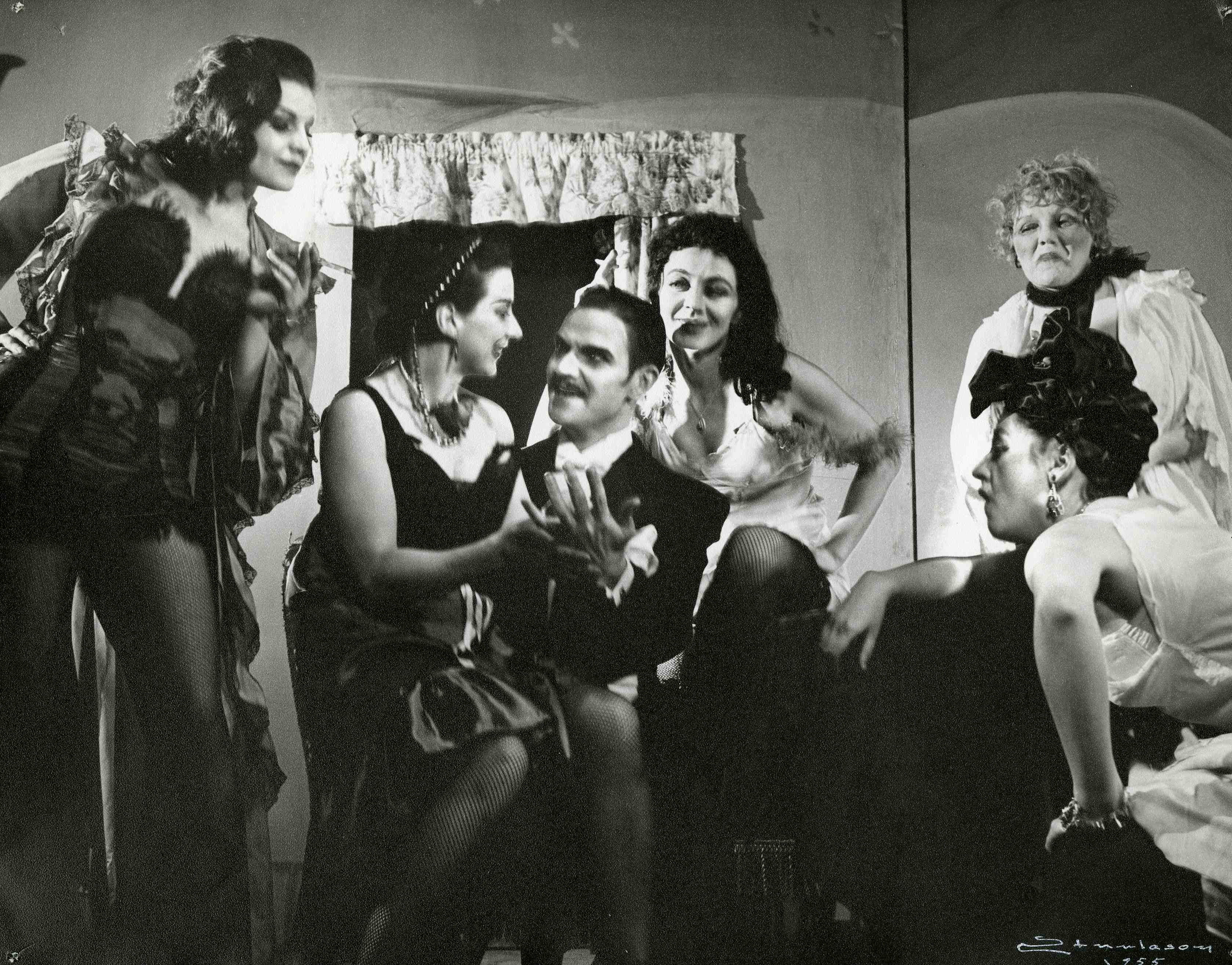 Fotografi fra Folketeatrets produksjon Tolvskillingsoperaen (1955).
