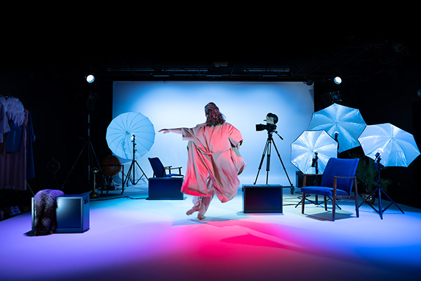 Forestillingsfoto fra Den Nationale Scenes produksjon Lenis blikk- eller kunsten å trippe på åpenbaringens dørstokk (2023)