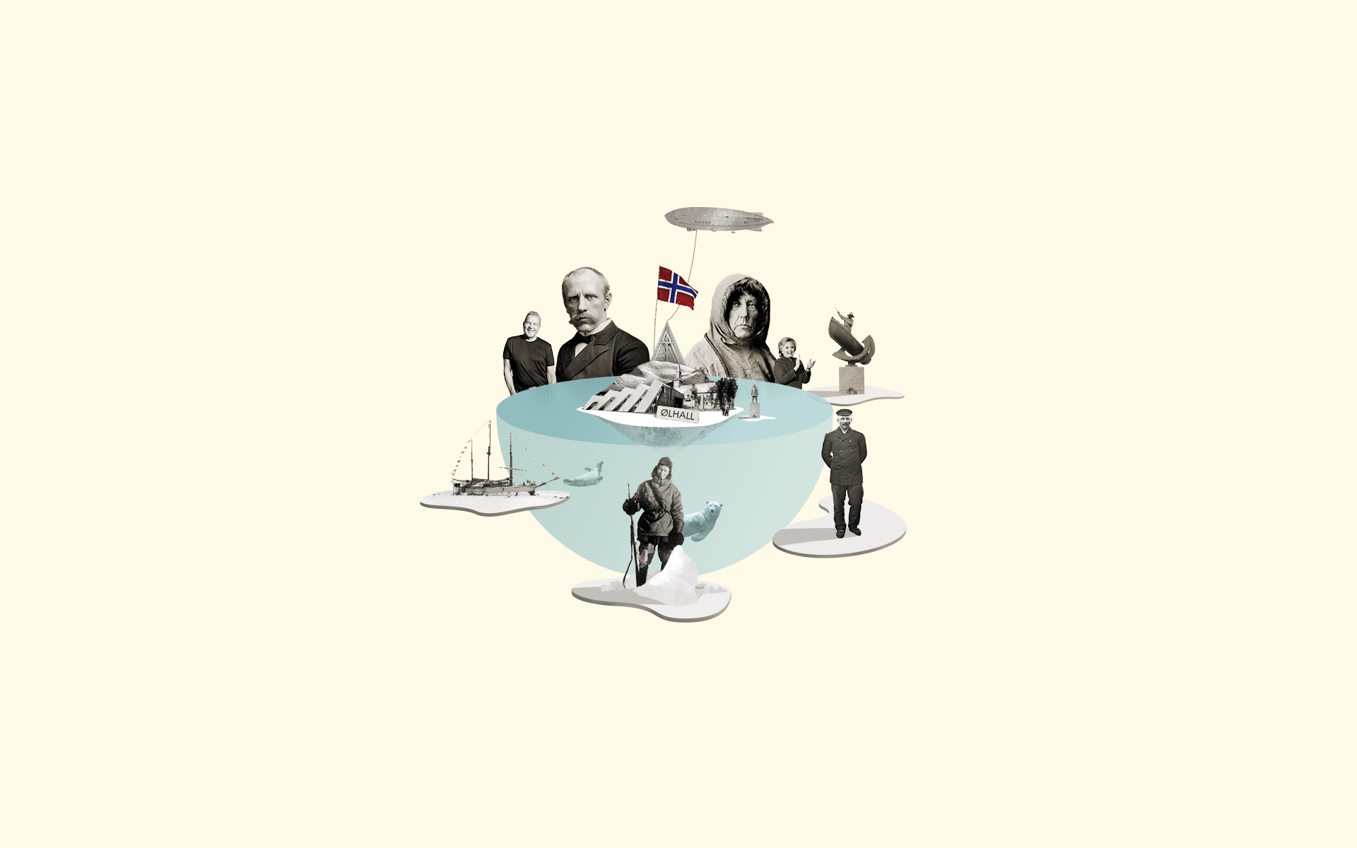 Plakat fra Porten til Ishavet - eller da Tromsø blei sentrum i verden (2024) av Hålogaland Teater.