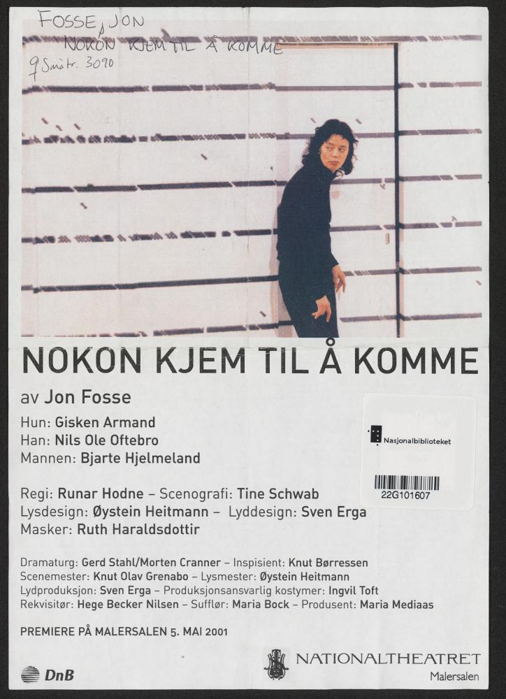 Forestillingsprogram til Nationaltheatrets produksjon Nokon kjem til å komme (2001).