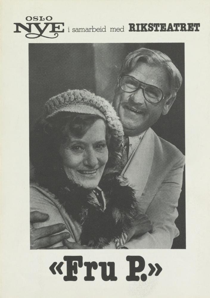 Forestillingsprogram til Oslo Nye Teaters produksjon "Fru P." i samarbeid med Riksteatret (1978).