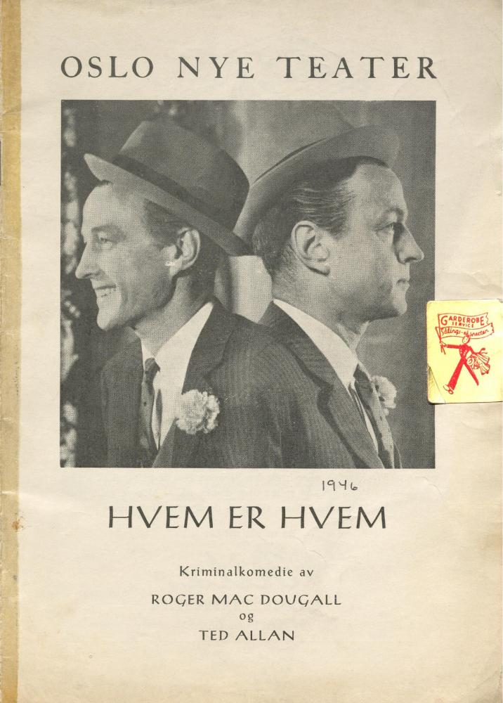 Forestillingsprogram til Oslo Nye Teaters produksjon Hvem er hvem (1962).
