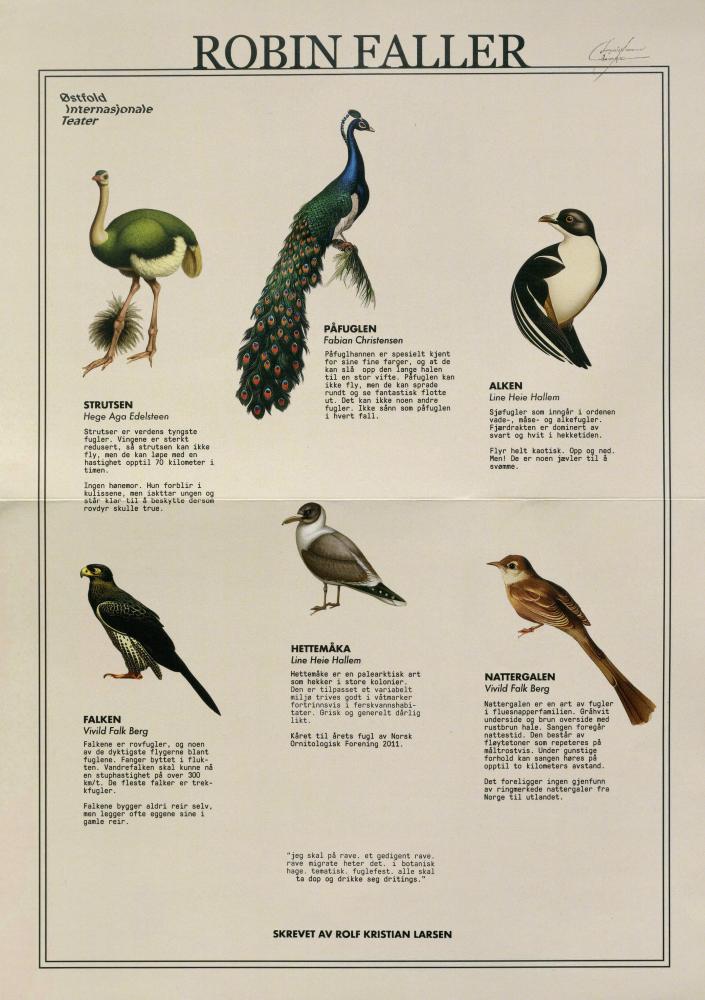 Forestillingsprogram til Vega Scene, Østfold Internasjonale Teater og Den Nationale Scene sin teaterproduksjon Robin Faller (2022)