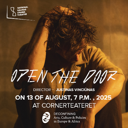 Plakat fra National Kaunas Drama Theatres produksjon Open the Door (2024).