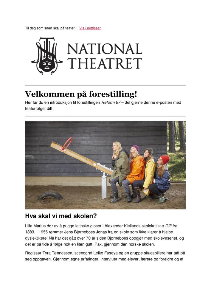 Forestillingsprogram til Nationaltheatrets produksjon Reform 97 (2020).