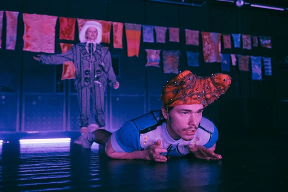 Forestillingsfoto fra Kunsthøgskolen i Oslo, Teaterhøgskolens studentproduksjon Dager under (2020).