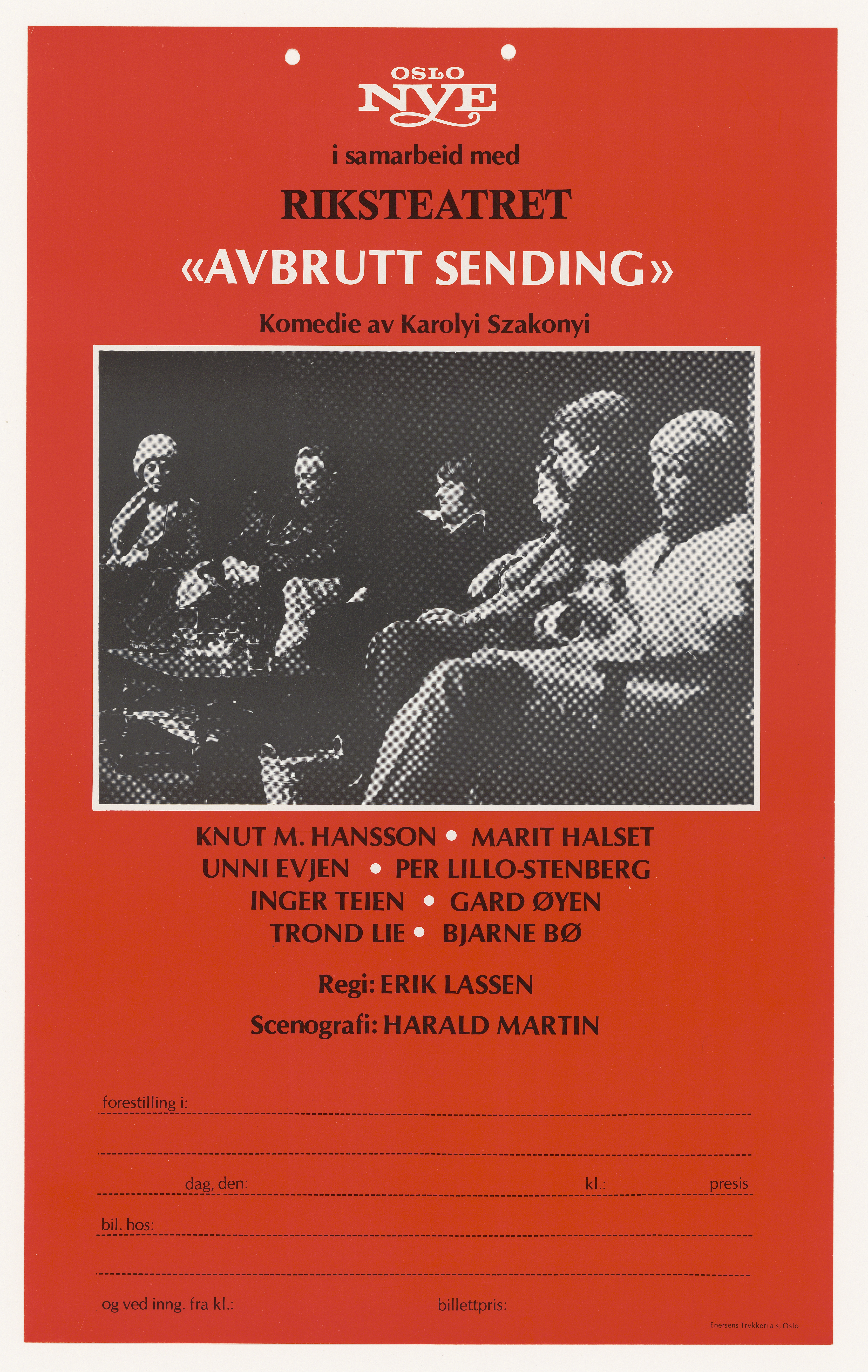 Plakat fra Oslo Nye Teaters produksjon Avbrutt sending (1979).