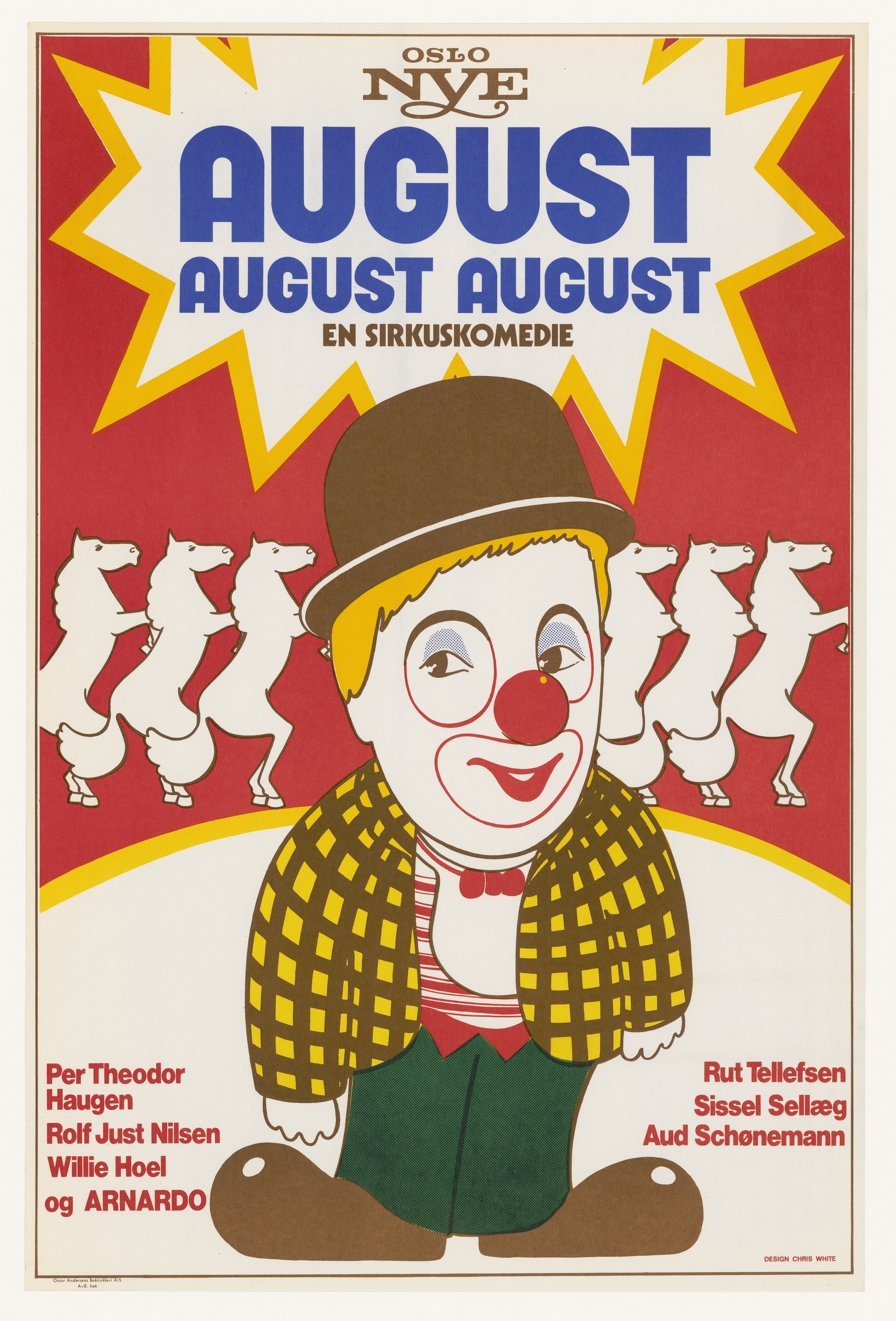 Plakat fra Oslo Nye Teaters produksjon August-August-August (1970).