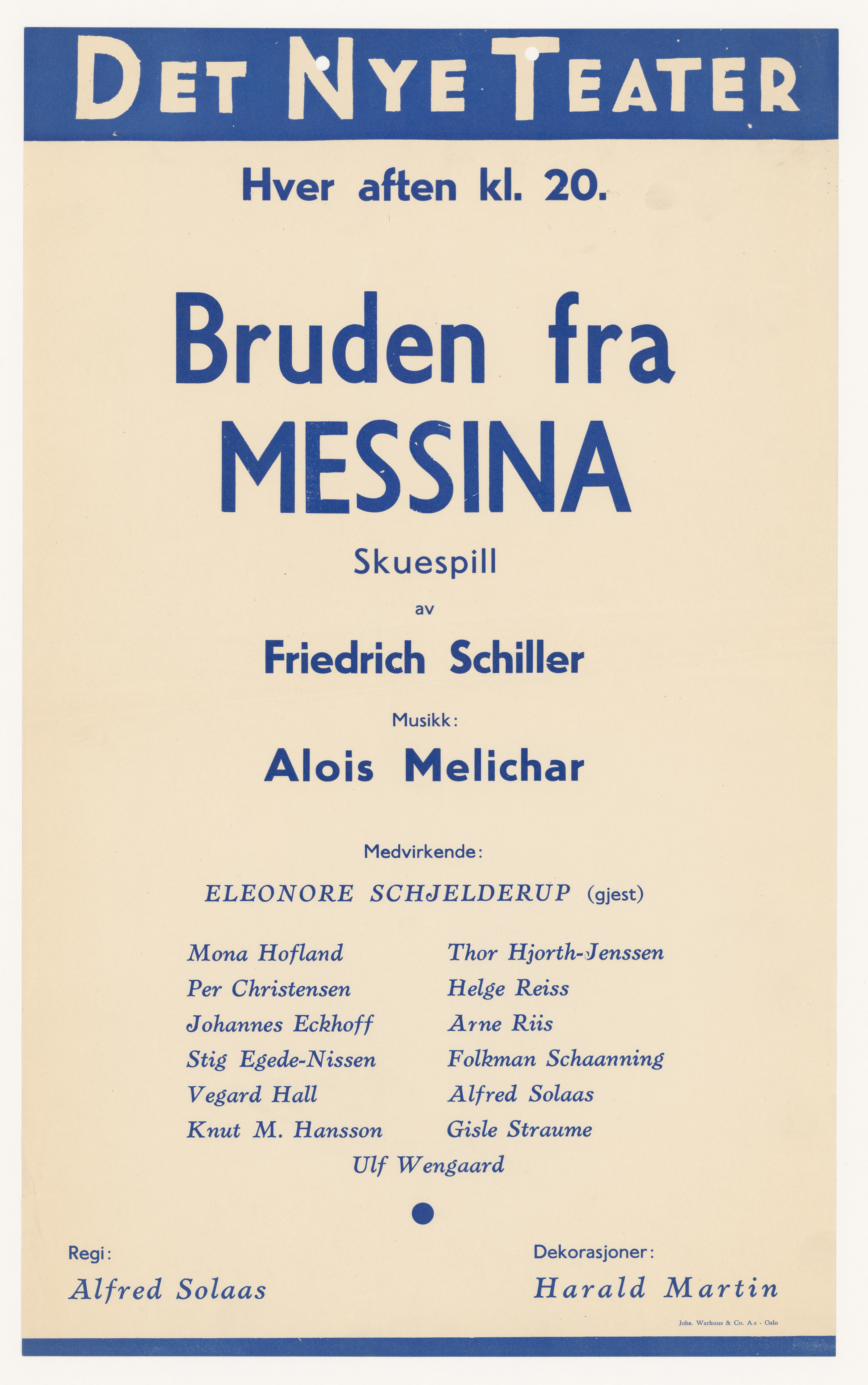 Plakat fra Bruden fra Messina (1955) av Det Nye Teater.