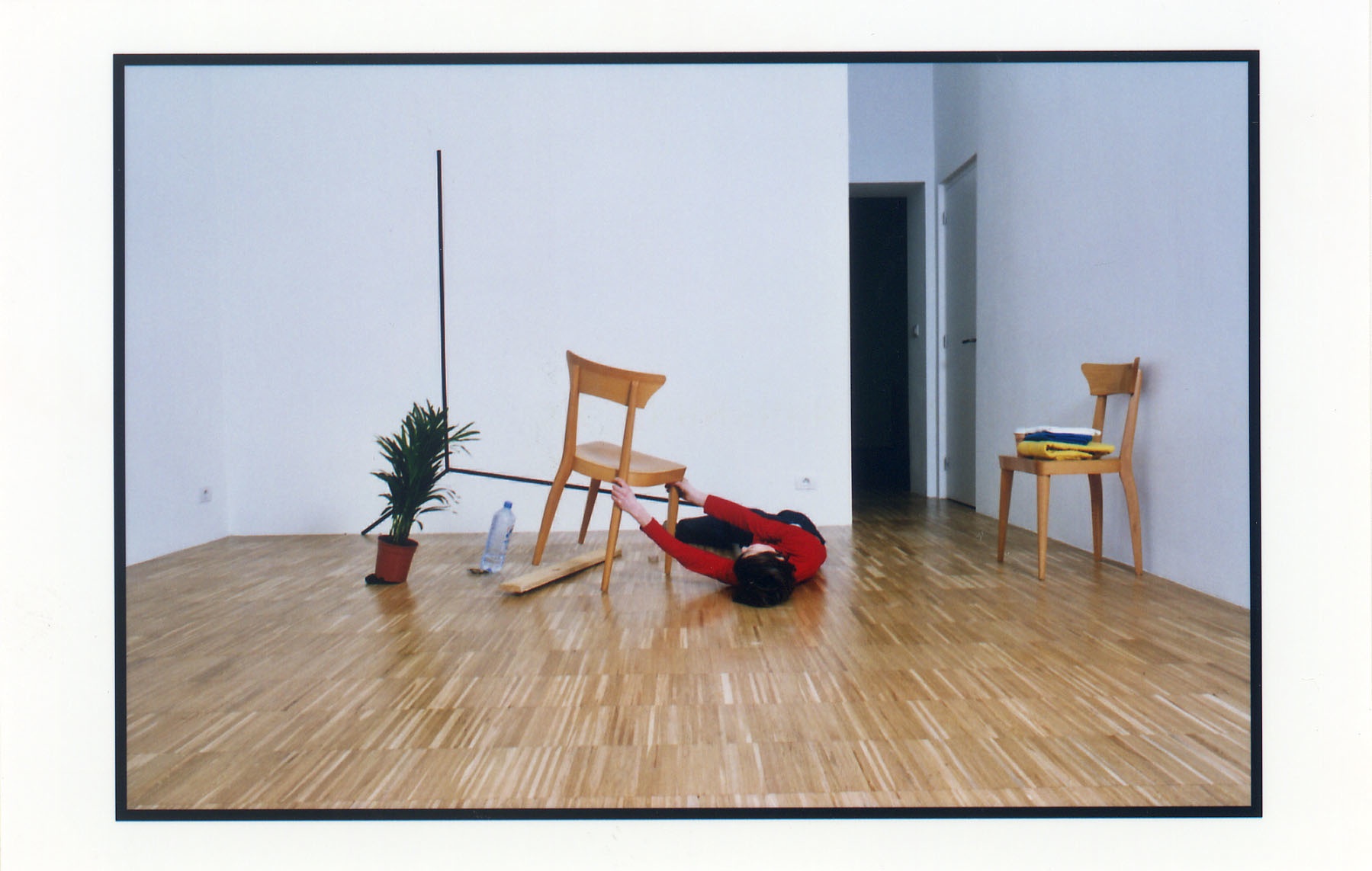 Fotografi fra produksjonen Private collection (2002) av Mette Edvardsen. På bildet: Mette Edvardsen. Foto: Ilse Joliet.