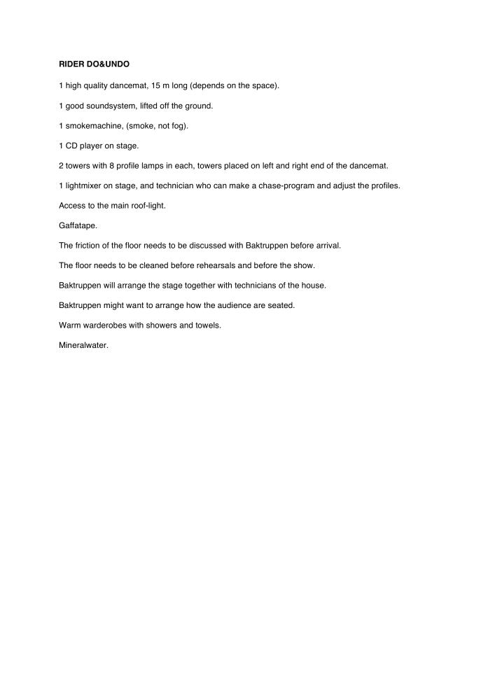 Teknisk raider for Baktruppens produksjon "Do & Undo" (2002)