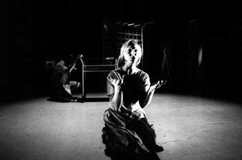 Fotografi fra Barske Glæder Produksjoners produksjon Ariel (2000). På bildet: Janne Langaas. Foto: Stein Jarle Nilsen.