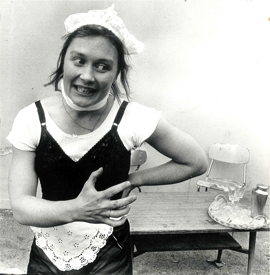 Fotografi fra soloforestillingen Mannen som fødte en kvinne (1981) av og med Elsa Kvamme.