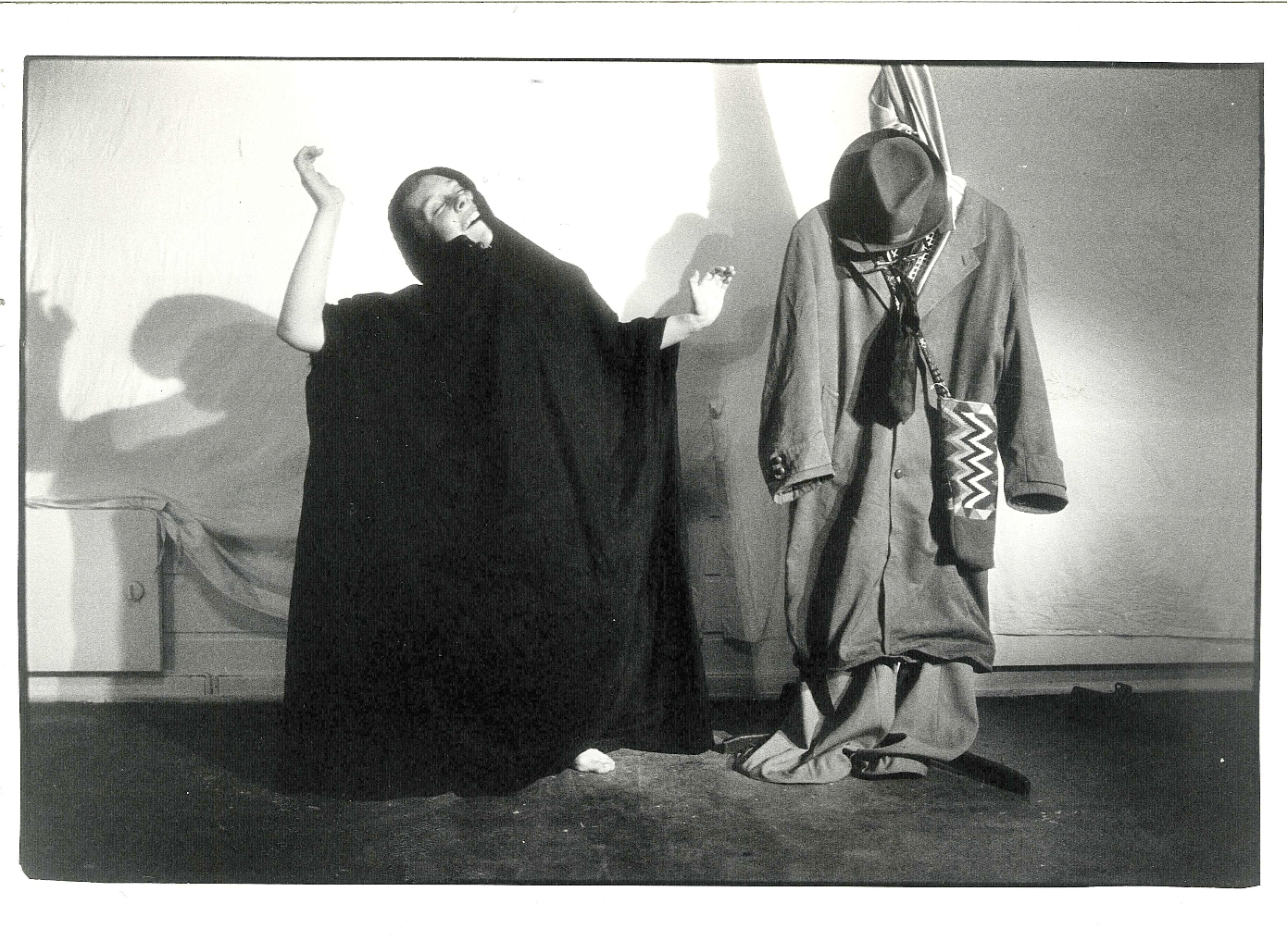 Fotografi fra soloforestillingen Mannen som fødte en kvinne (1981) av og med Elsa Kvamme. På bildet: Elsa Kvamme. Foto: Agnethe Weisser