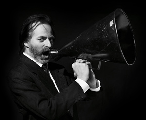 Fotografi fra POS Theatre Companys produksjon KOM! (2007). På bildet: Øystein Røger (som Allan Edwall). Foto: Sturla Bakken