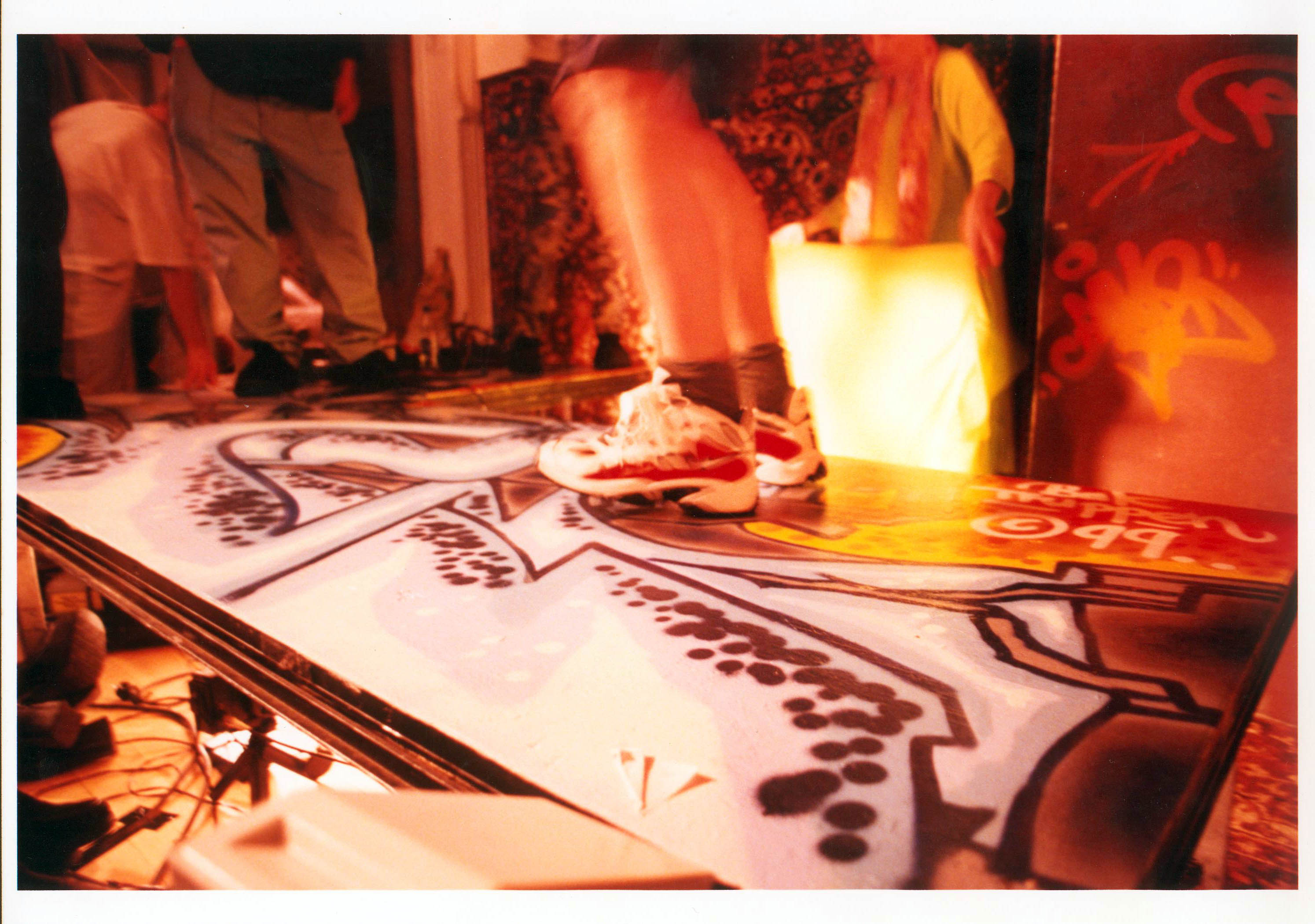 Fotografi fra Baktruppens produksjon Spekt (1999). Bildet er av scenegulvet i produksjonen. Fotograf: ukjent.