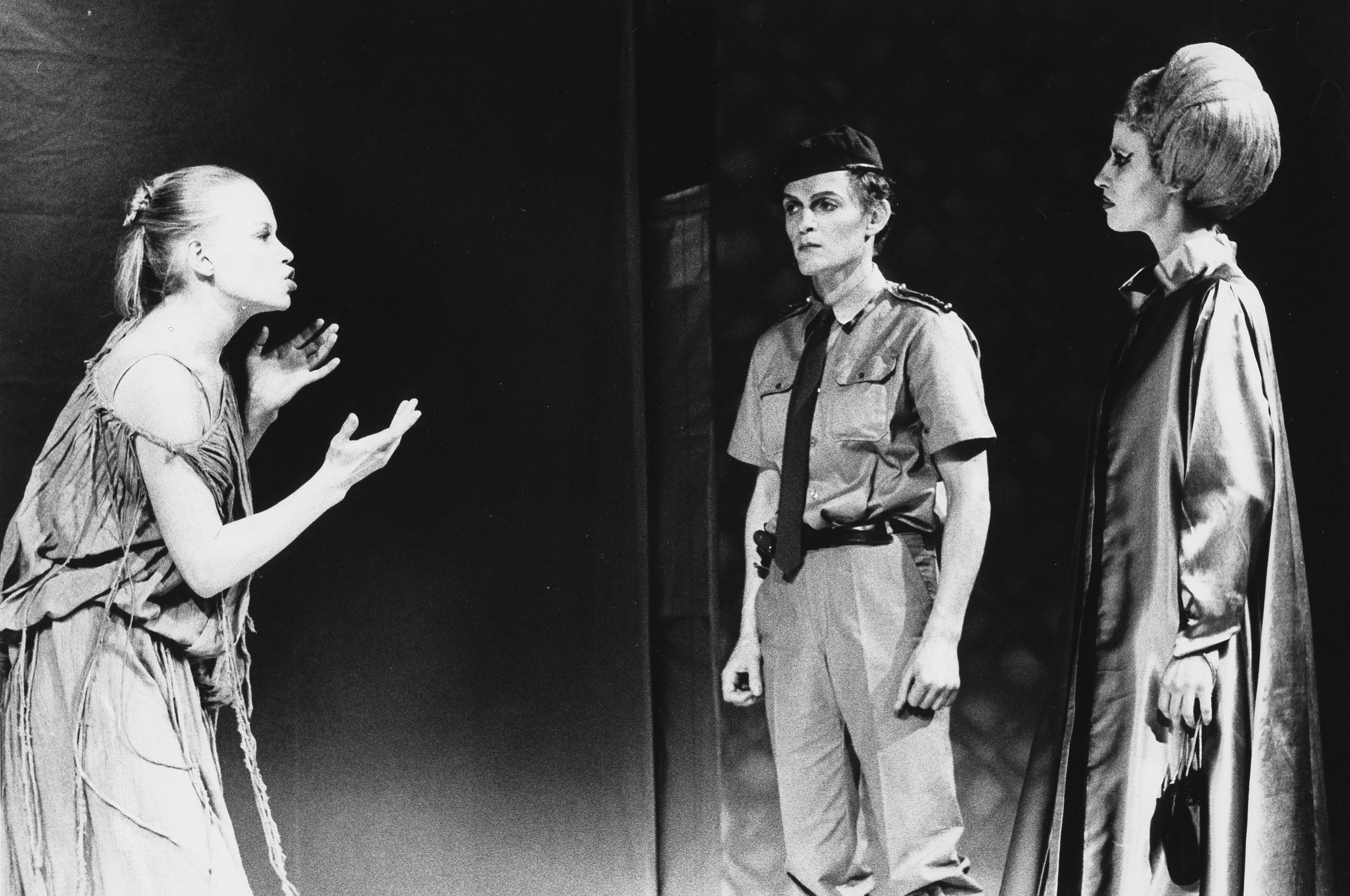 På bildet: Anitta Suikkari (som Cassandra), Øivind Glosli (som Kapteinen), Birgit Christensen (som Hertuginnen).