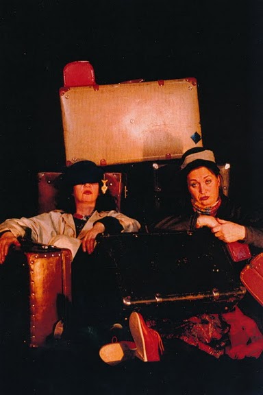 Fotografi fra Klomadu Teater produksjon Koffertene (1996). På bildet: Nina Engelund og Karen Høie. Foto: Svein Gundersen