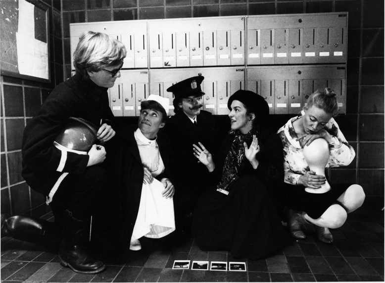 Fotografi fra Perleporten Teatergruppes produksjon "Er det sant det vi ser?" (1983)