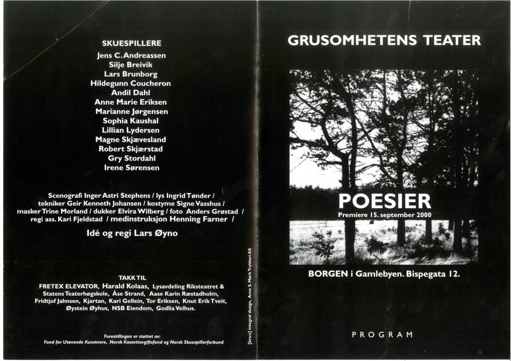 Program for Grusomhetens Teaters produksjon "Poesier" (2000)
