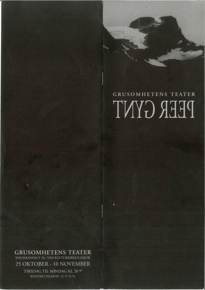 Program for Grusomhetens Teaters produksjon "Peer Gynt" (2002)