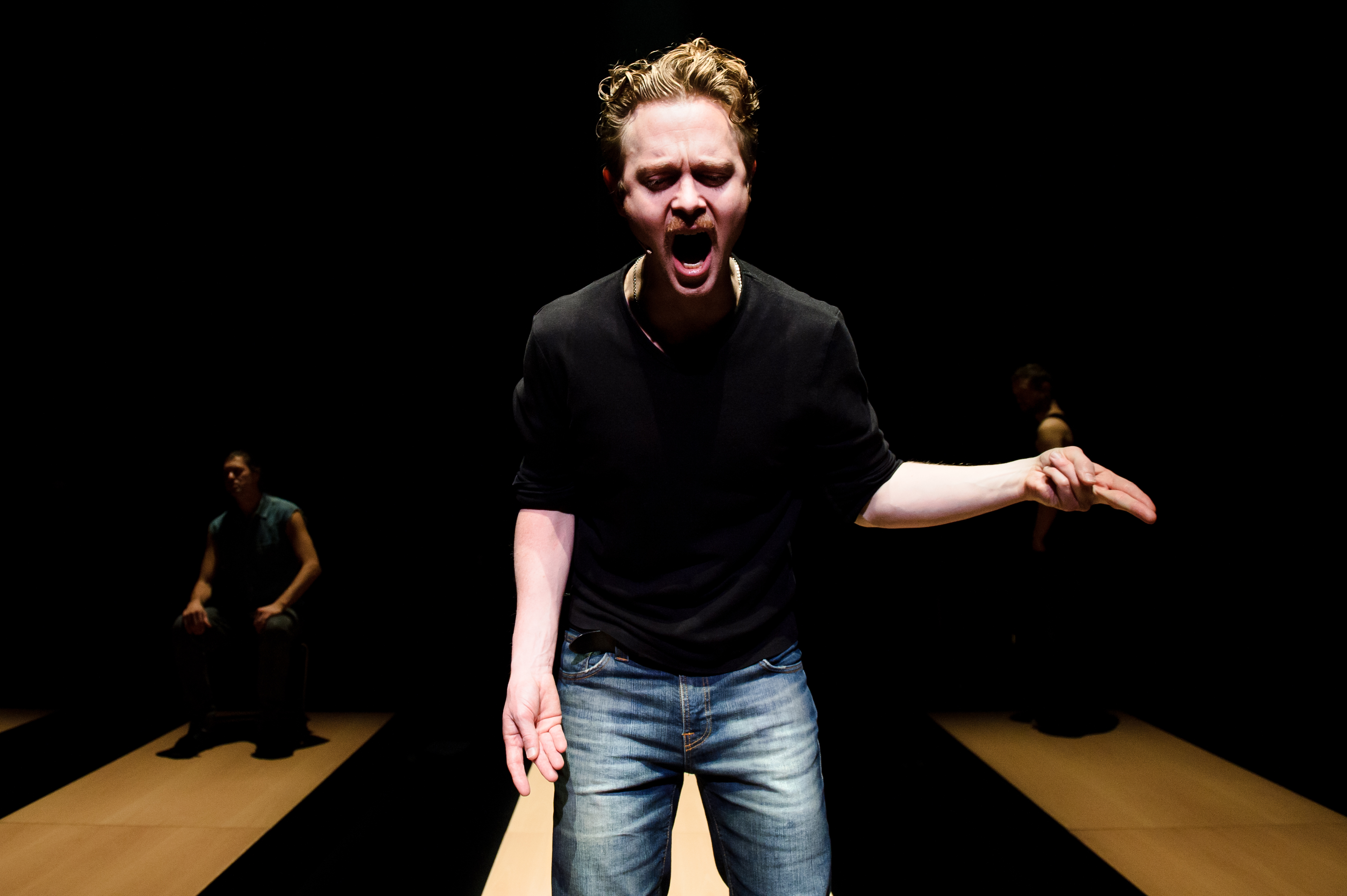 Fotografi fra Teater Manu i samarbeid med Riksteatrets produksjon Jeg var Fritz Moen (2011).