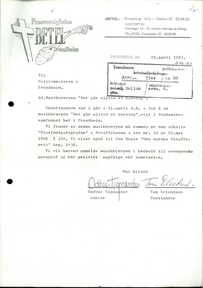 Politianmeldelse av Tramteatrets produksjon Det går alltid et korstog (1983)