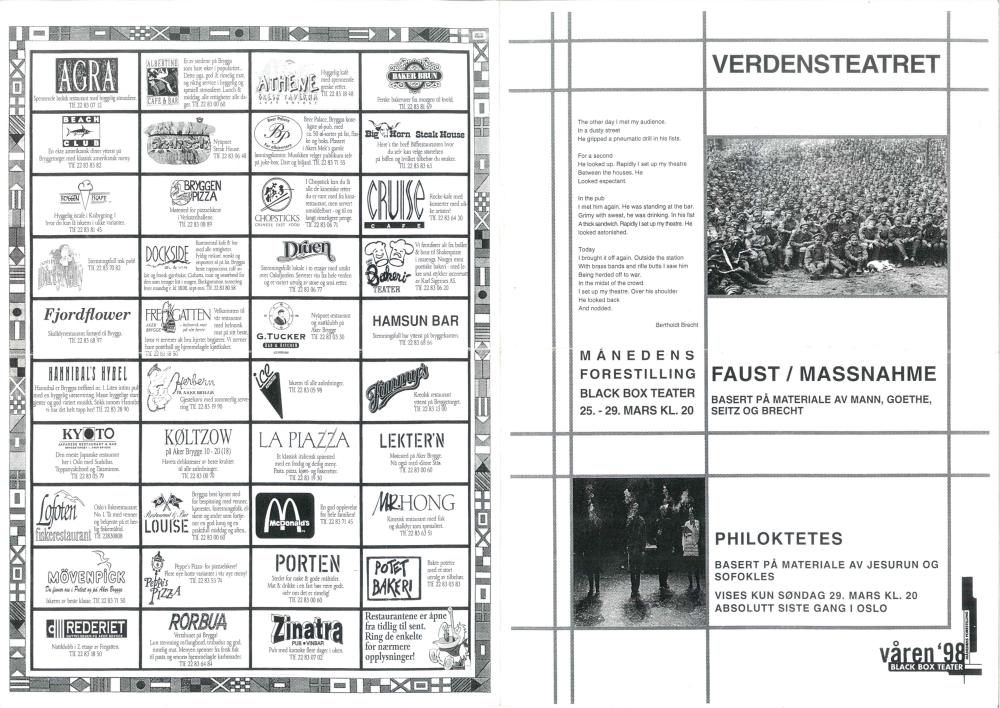 Program for Verdensteatrets produksjon Faust/Die Massnahme (1998)