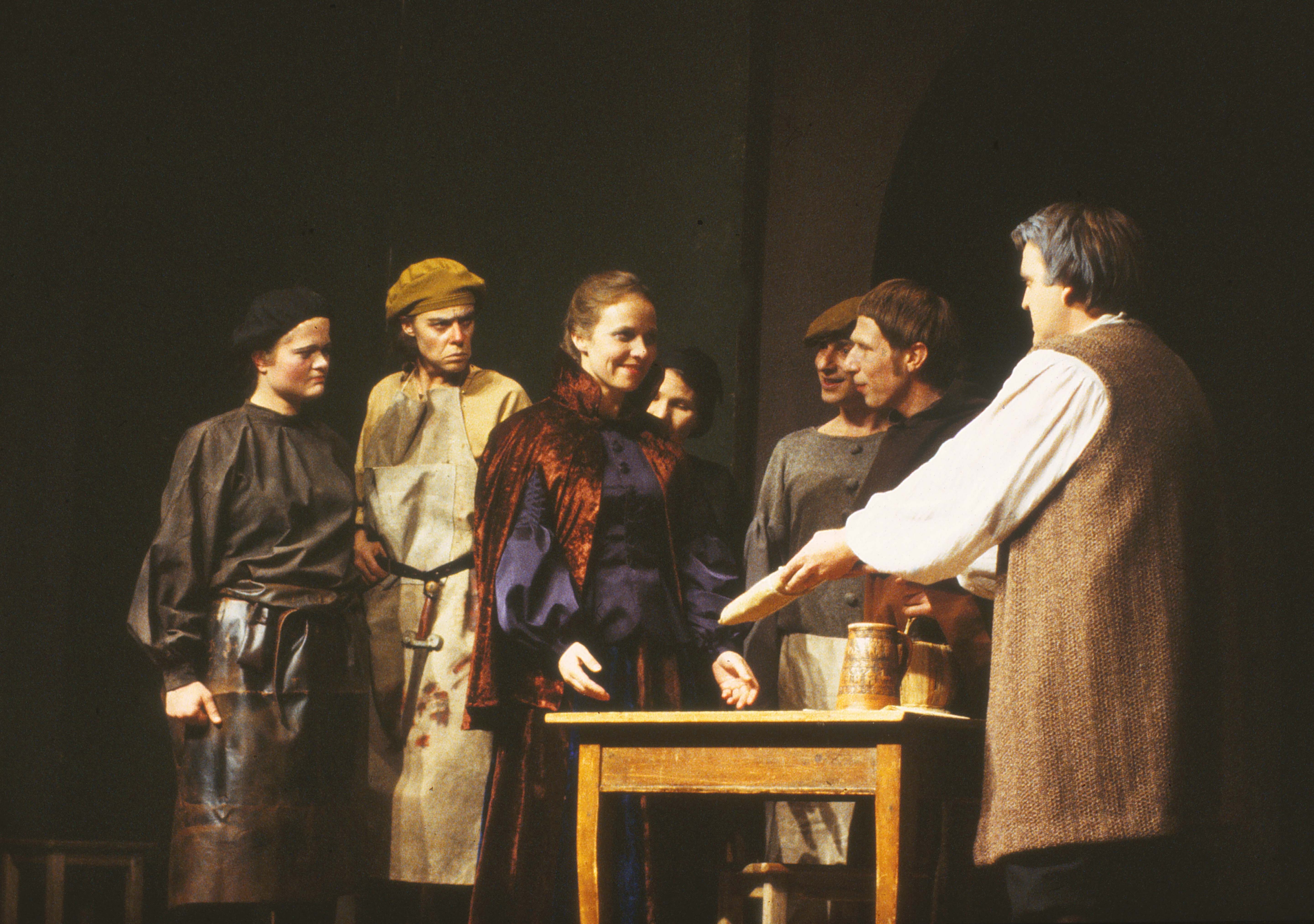 Fotografi fra forestillingen Mot Karneval, I midten Kristin Lyhmann som Barbera, th. Svein Gundersen som Machiavelli.