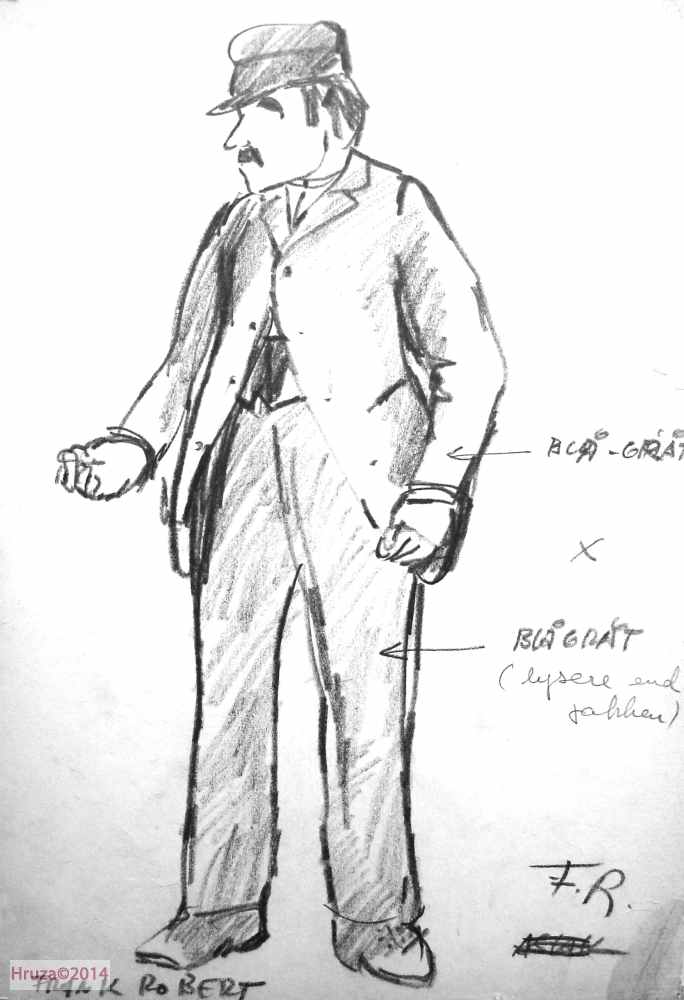Kostymetegning av Lubos Hruza til Frank Robert i rollen som Kjøkemesteren i produksjonen av Henrik Ibsens Peer Gynt (1975), Nationaltheatret. Forestillingen hadde premiere 20. mars 1975 på Nationaltheatrets Hovedscene.