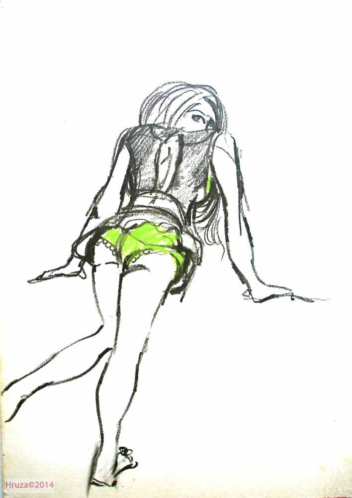 Kostymetegning av Lubos Hruza til Maryon Eilertsen,Hilde Sophie Plau eller Sylvia Salvesen i rollen som en av Seterjentene i produksjonen av Henrik Ibsens Peer Gynt (1975), Nationaltheatret. Forestillingen hadde premiere 20. mars 1975 på Nationaltheatrets Hovedscene.