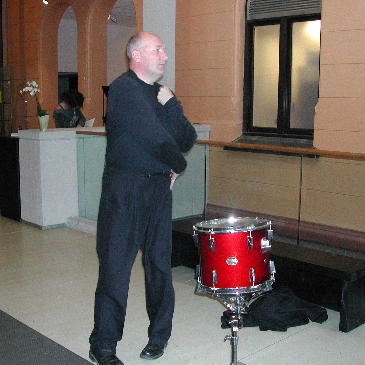 Foto fra performancen Hit-and-run-Art av Bjørn Sverre Kristensen, vist under Kunstbanken Hedmark Kunstsenters performancefestival 06.11.2004.