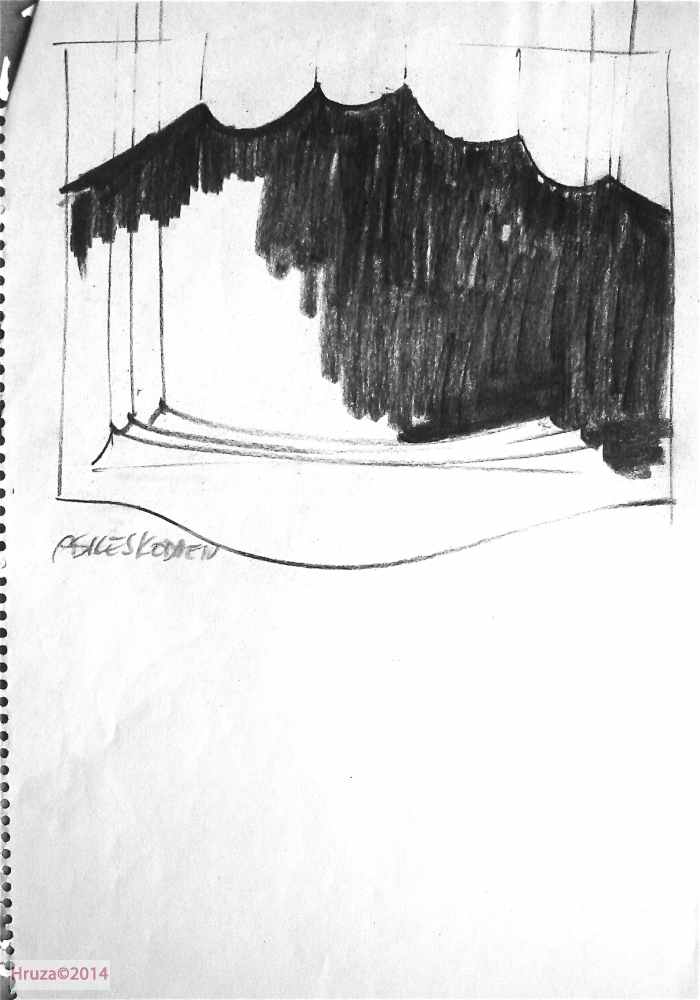 Skisse av Lubos Hruza til sceneløsning av Peer Gynt, 1975, Nationaltheatret
