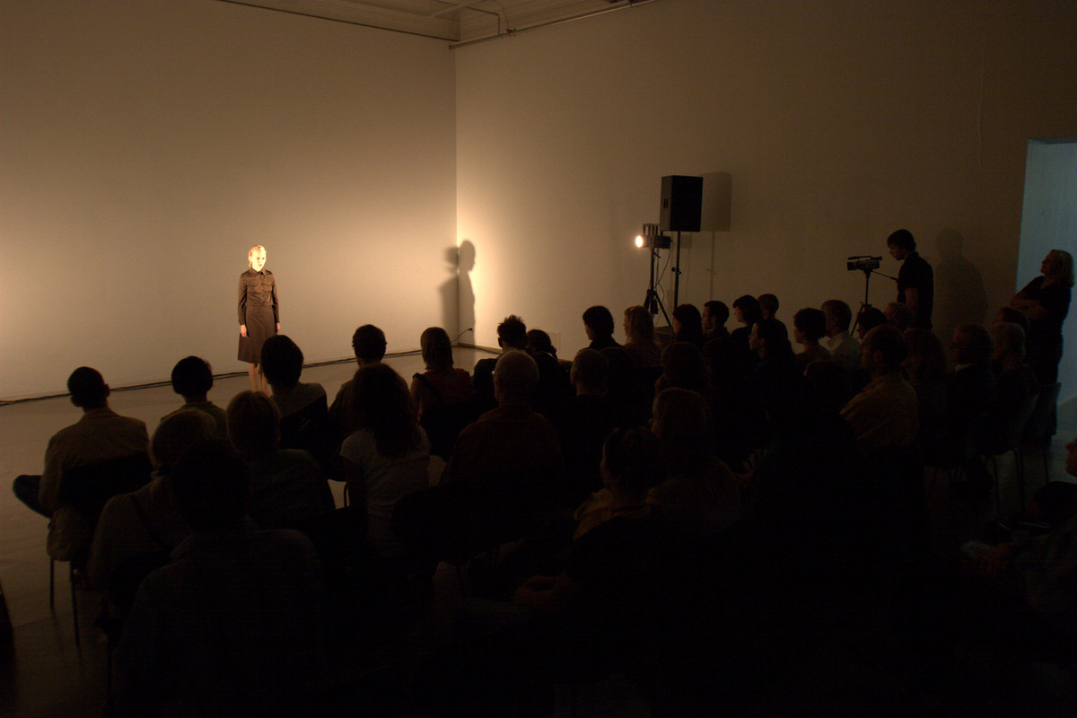 Foto fra Ann Kristin Bergesens visning av performancen Tap Performance under Kunstbanken Hedmark Kunstsenters performancefestival 2005.