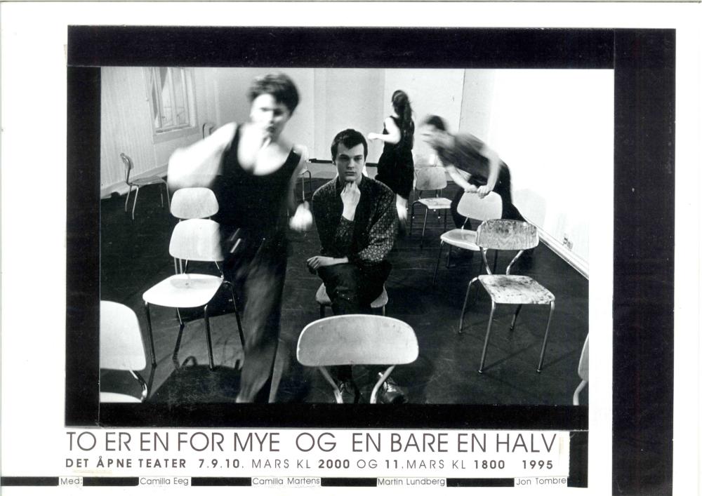 Flyer for Det Motsatte Prosjekts produksjon 2 1/2. Del 1 - To er en for mye og en er bare en halv (1995).