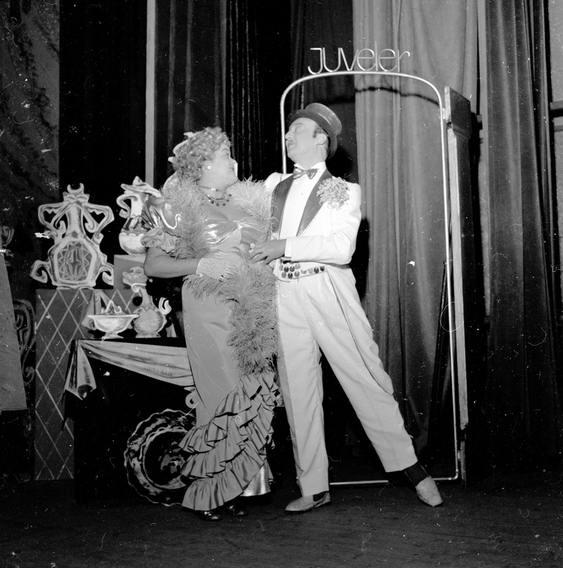 Fotografi fra Edderkoppen Teaters revy "I tykt og tynt" (1955)