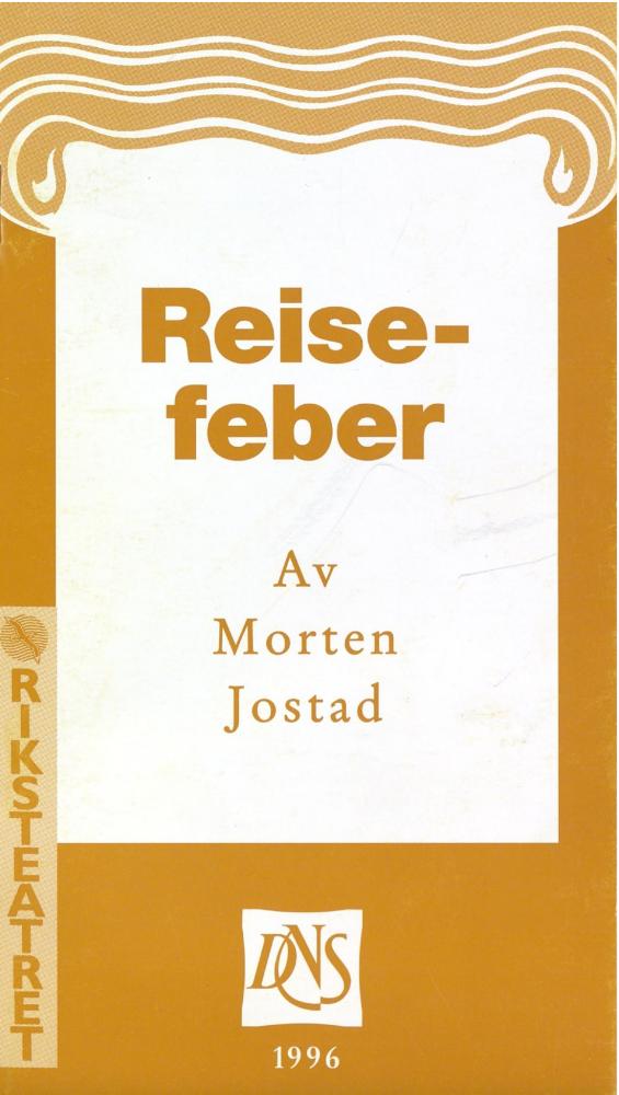 Forestillingsprogram for teaterproduksjonen Reisefeber (1996) som var en samproduksjon mellom Den Nationale Scene, Riksteatret og Bergen Komedia Teater.