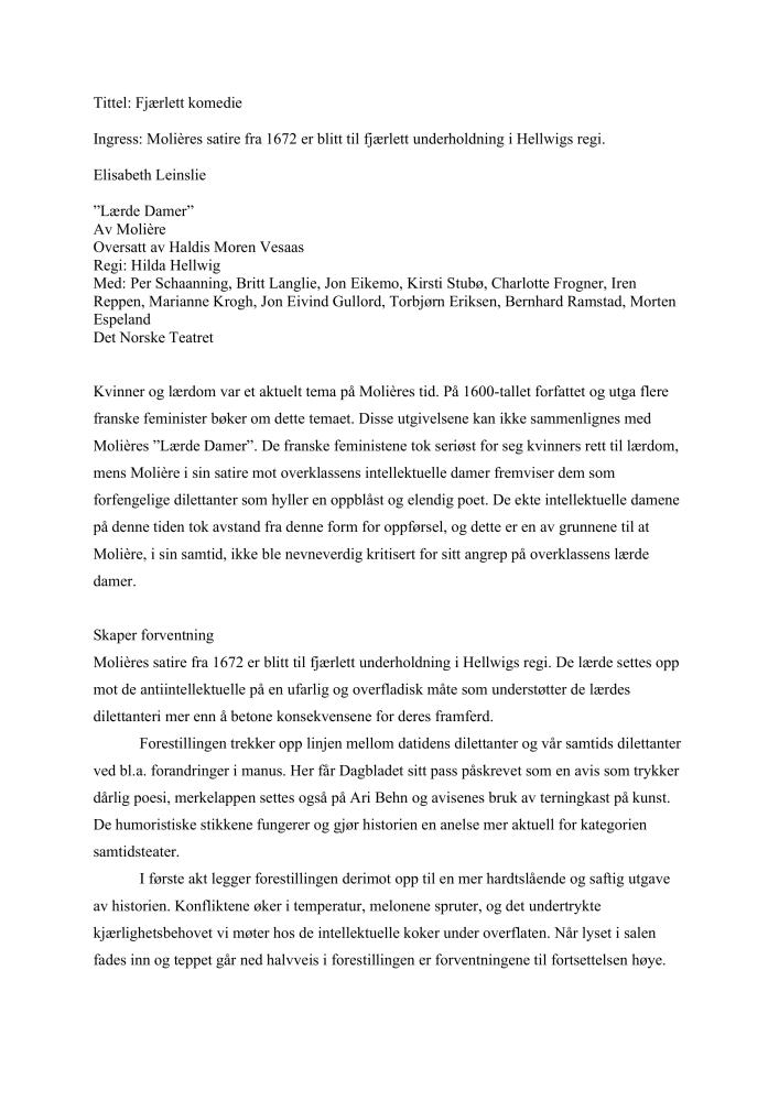 Anmeldelse av Elisabeth Leinslie i Dagsavisen av Det Norske Teatrets produksjon "Lærde damer" (2007)