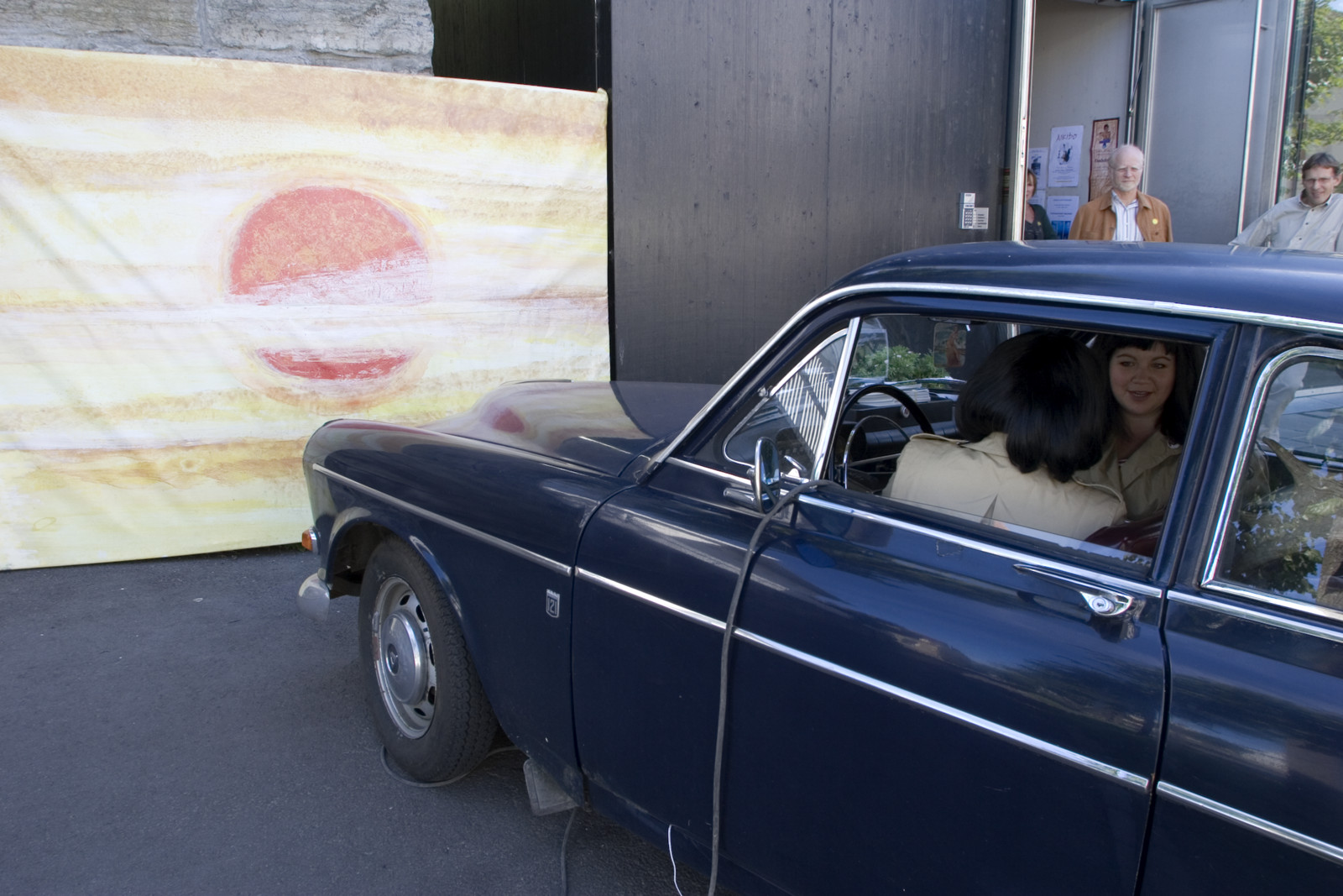 Foto fra GilbertandGrapes performance By the Way, vist under Kunstbanken Hedmark Kunstsenters performancefestival 03.09.2005 og 04.09.2005.