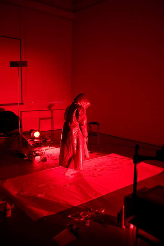 Foto fra performancen Natural Artifice (2007) av Irma Optimist, vist under Performancefestivalen 2007 i Kunstbanken Hedmark Kunstsenter.
