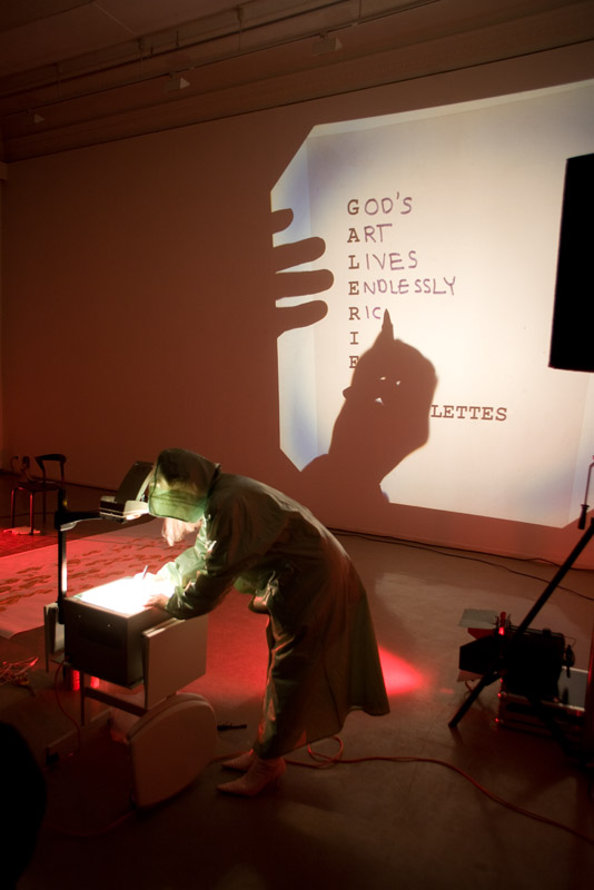 Foto fra performancen Natural Artifice (2007) av Irma Optimist, vist under Performancefestivalen 2007 i Kunstbanken Hedmark Kunstsenter.