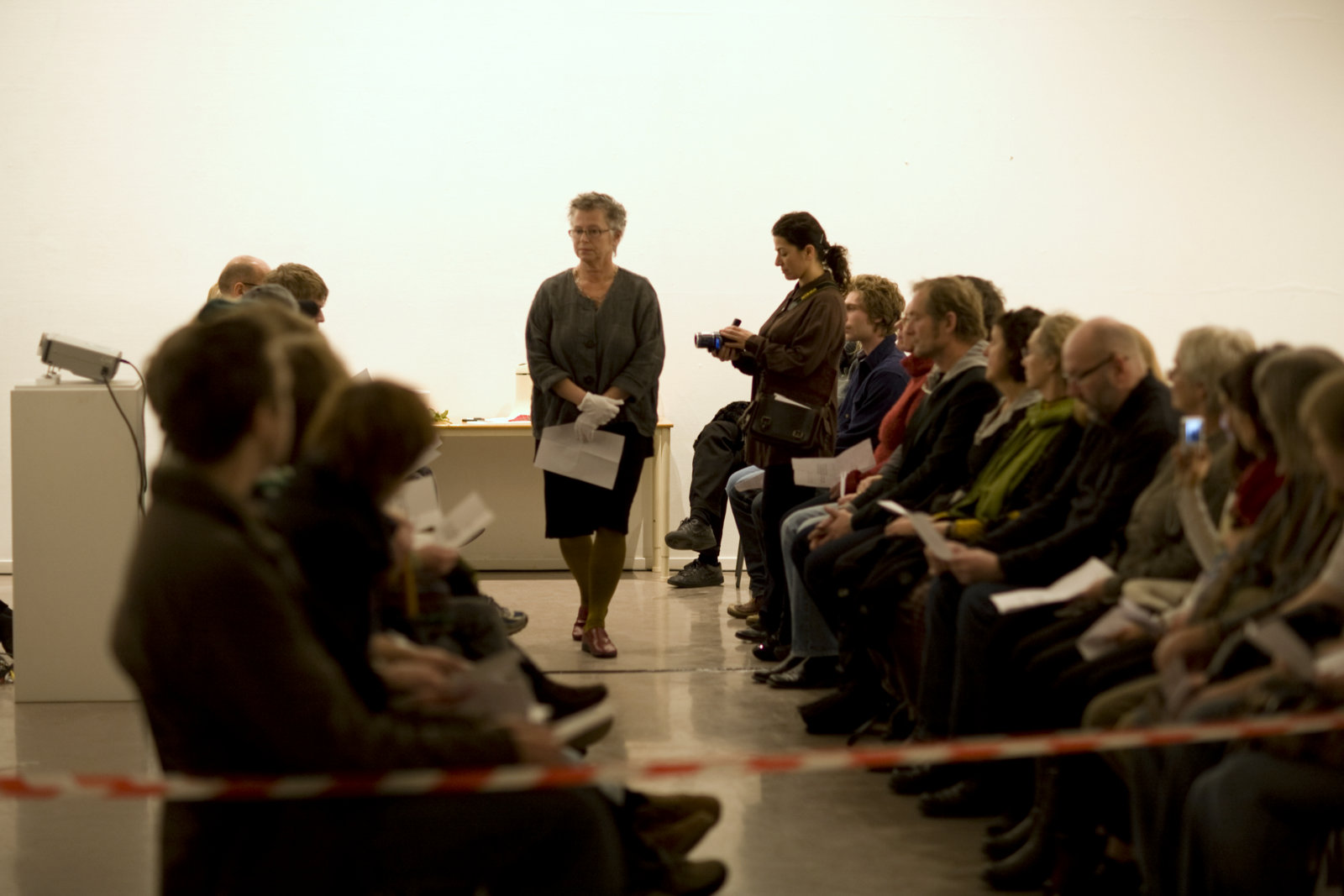 Foto fra performancen Fortune Telling (2007) av Roghieh Asgari Torvund, vist under Performancefestivalen 2007 i Kunstbanken Hedmark Kunstsenter.